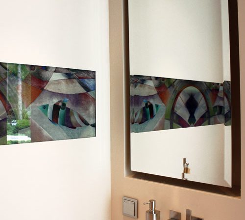 Hier wurde unser Motiv hinter Glas gedruckt und in die Wand eingepasst.