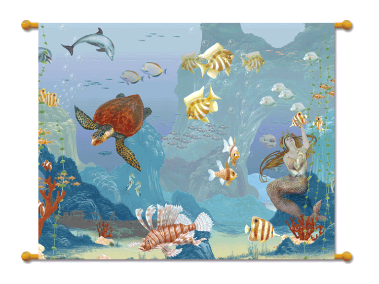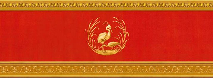 Den oberen Bereich bildet ein Fries in Rot -und Goldtönen, im unteren Bereich wurde die Marmorierung der Schwimmbadwände fortgeführt.