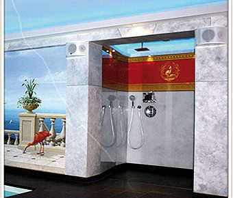 Duschnische im pompejanischen Stil | Wandgestaltung hinter Glas