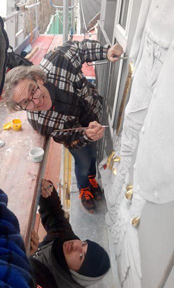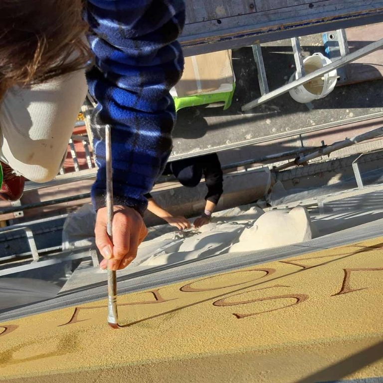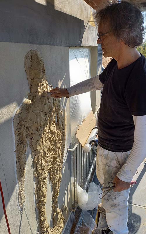 Über mehrere Ebenen wir gebildhauert und gemalt.