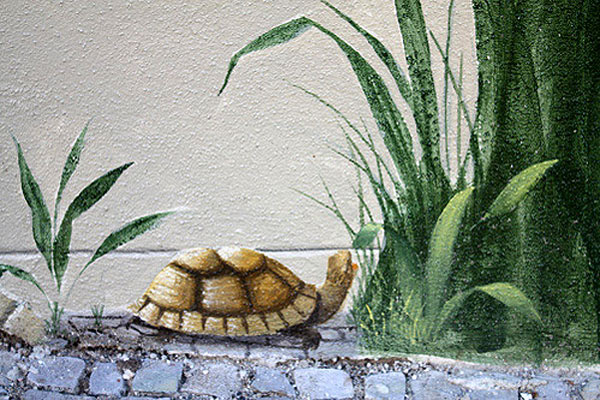 Eine detailreiche Ausführung der Malerei, die durch viele, zum Teil versteckte Tiere belebt wird, lässt Kinder wie Erwachsene auf Entdeckungsreise gehen.