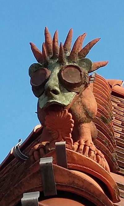 Optisch wird die strenge Gliederung der Architektur von Pflanzen und Tieren aufgelockert.