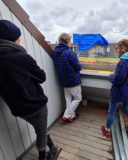 Unser Arbeitsplatz, in luftiger Höhe, wurde kuschelig beplant damit wir vor Wind und Regen geschützt sind.