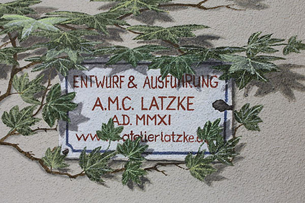 Und konsequent blieben wir auch bei der angepassten Unterschrift in Jugendstilmanier , die sich perfekt in die Gesamtgestaltung einfügt.