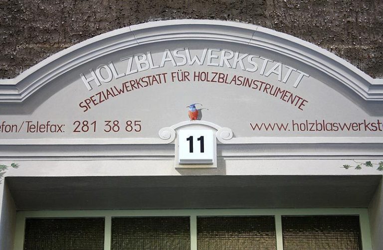 Das neu gestaltete Werbeschild des Holzblasinstrumentenbauers bildet nun eine Einheit mit dem gesamten Baukörper und ist ein echter Hingucker.
