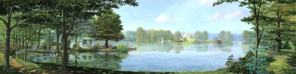Unser Wandbild im impressionistischen Stil bietet beim näheren Betrachten viele idyllische Plätze.