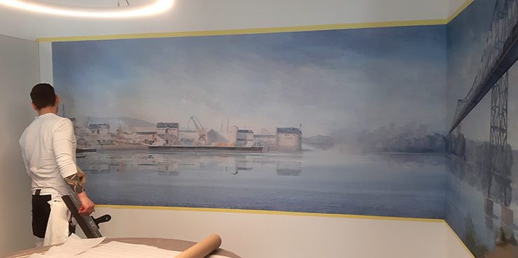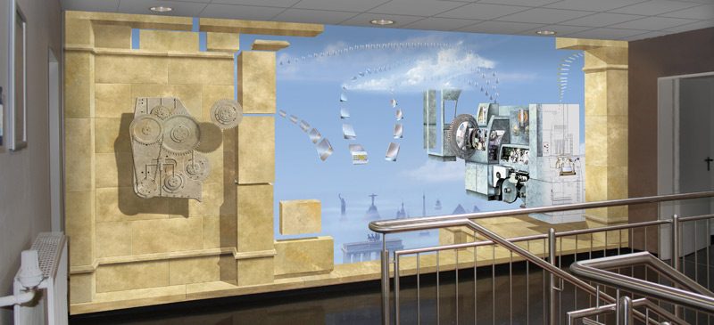 Aus den in unseren Ateliers entstandenen Originalvorlagen entwickeln wir das für sie passende Motiv. Abgestimmt auf Raumnutzung, Architektur und verfügbarer Wandfläche ergänzen wir die Wandgestaltung mit aussagekräftigen Bildmotiven und gleichen diese in Perspektive und Farbgebung an.
