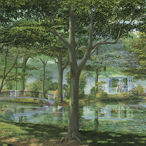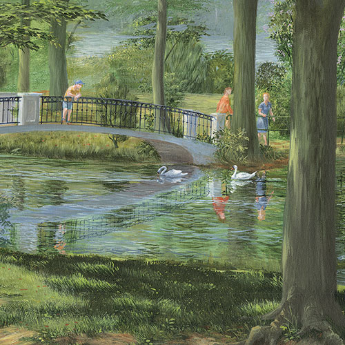 Unser Wandbild im impressionistischen Stil bietet beim näheren Betrachten viele idyllische Plätze.